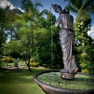 Beba uma água de coco na sombra de um jardim tropical.